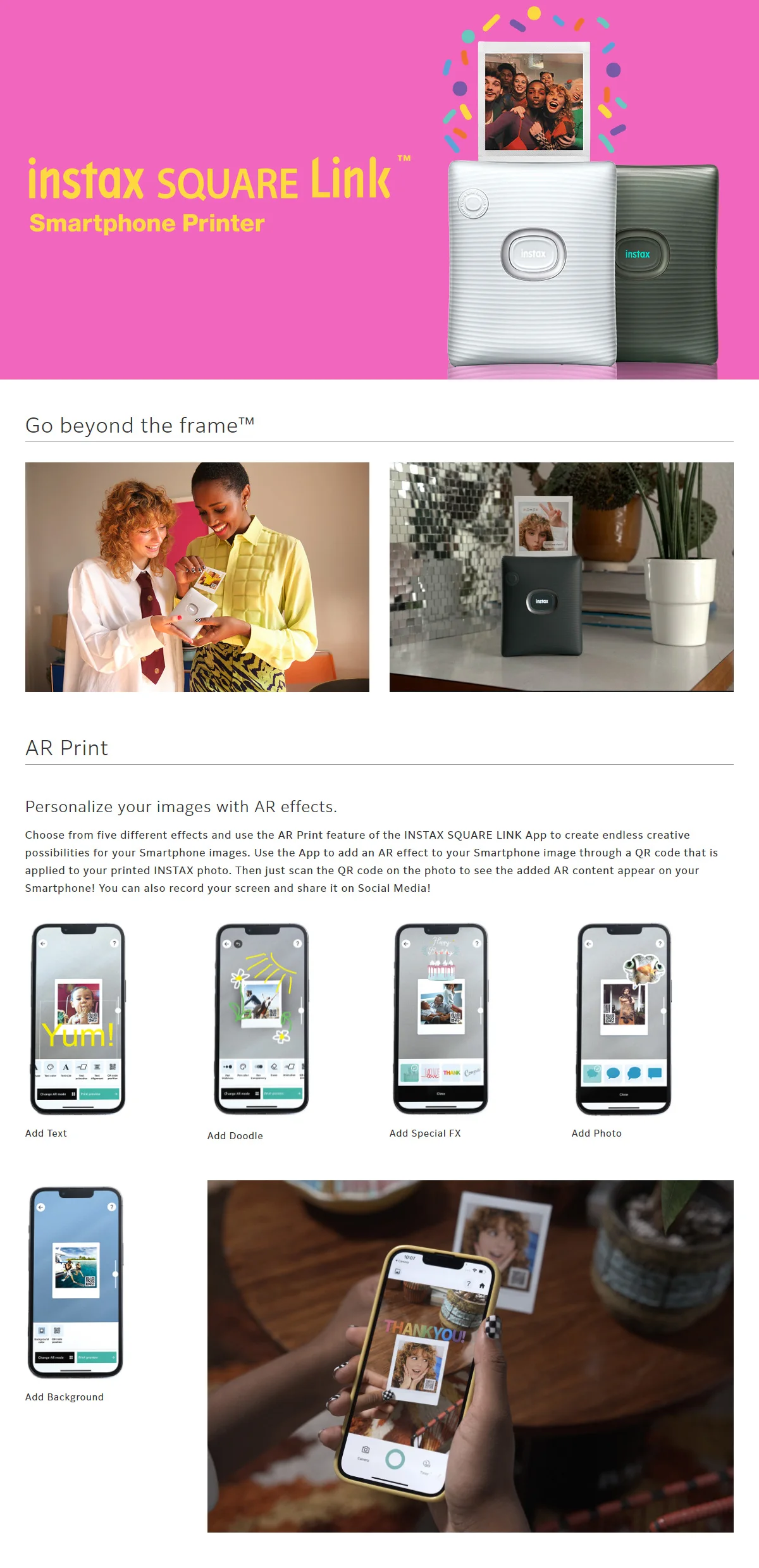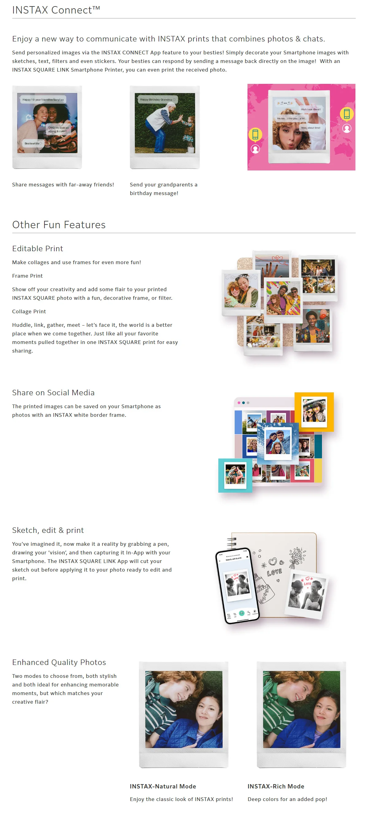 DURABLE AND RELIABLE - Built with quality materials, the INSTAX SQUARE LINK is designed to last. Enjoy consistent performance and durability, ensuring your photo printer stands the test of time.